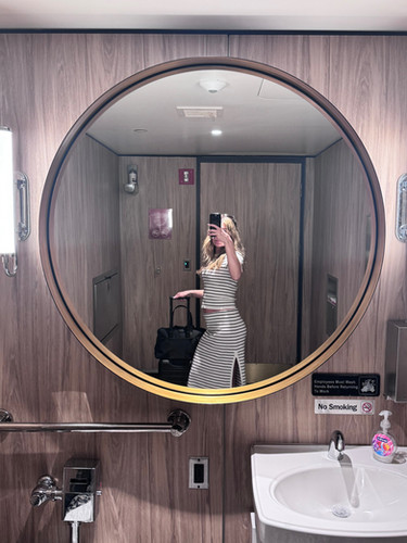 The restrooms here were a lot more comfortable than the airport's public bathrooms. The women’s room opened to a shared sink area with individual stalls, and everything felt clean and well-kept.